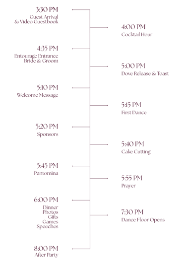 For the church ceremony, should your dress be sleeveless, we respectfully request the use of a shawl or wrap for coverage.